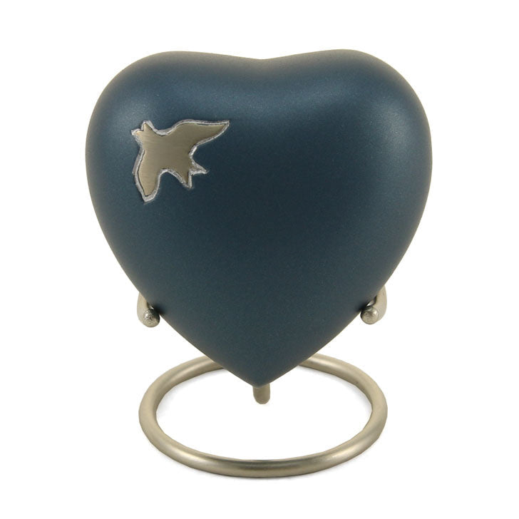 The Full Size Aria measures 10"H x 6.6" Diameter (200 cubic inches), the Keepsake Mini Aria is 2.9"H x 1.9" Diameter (3 cubic inches), and the Keepsake Heart is 2.7" x 2.9" x 1.6" (3 cubic inches).